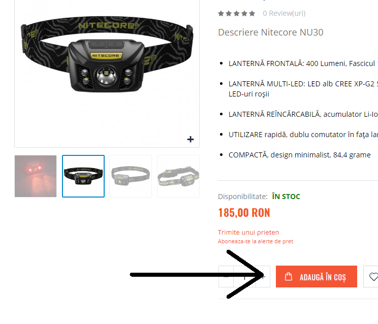 Pentru a achiziționa produse din magazinul EasyLight.RO, trebuie să apăsați butonul "Adaugă în coș" pentru fiecare produs dorit în parte. Butonul este disponibil atât pe paginile de căutare, cât și pe paginile produselor.