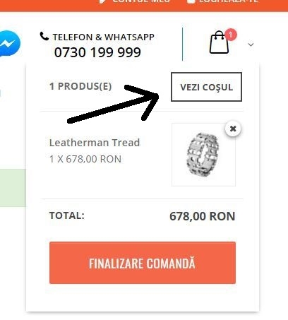 După selectarea produselor, acestea vor fi disponibile în coș, în partea dreaptă a site-ului. Cantitatea poate fi modificată ulterior, accesând "Coșul meu" din meniul de sus. Prin apăsarea butonului "Checkout" sau "Spre finalizarea comenzii" , veți înainta către completarea datelor.